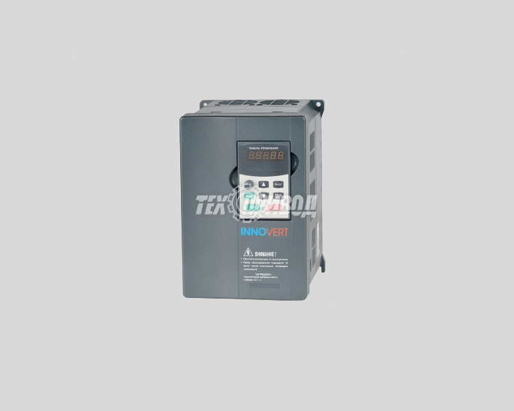 Преобразователь частоты INNOVERT IBD372U43B использует скалярный (вольт-частотный) метод управления скоростью вращения. К частотнику может подключаться трехфазный асинхронный двигатель мощностью 0,75 — 3,7 кВт. Входящее питание: 3-фазное 380В 50/60 Гц. Выходной ток — 8,6 А. Класс защиты — IP20.
